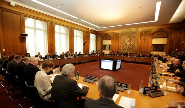 Gestir OECD hlýða á ræðu forseta Íslands.