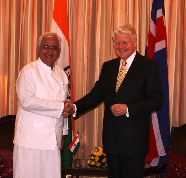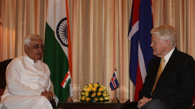 Forseti heilsar Salman Khurshid, utanríkisráðherra Indlands.