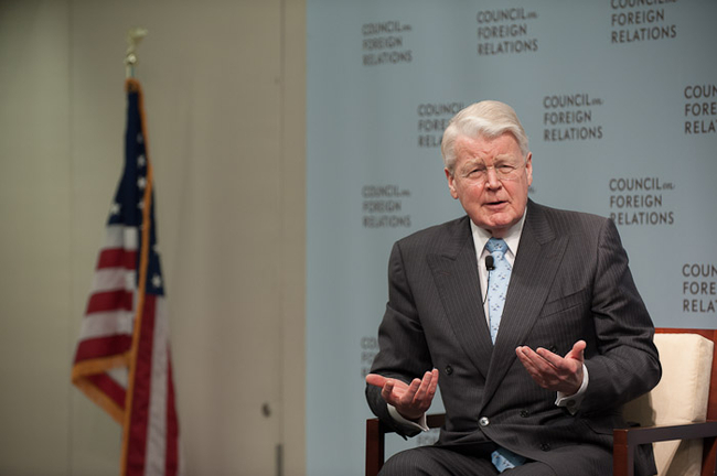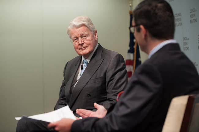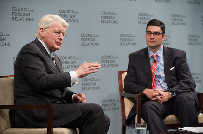 Frá umræðum í Council on Foreign Relations í Washingon; hægra megin situr viðmælandi forseta, Scott Borgerson.