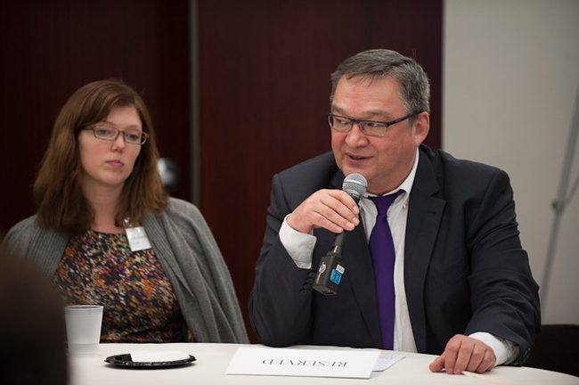 Kuupik Kleist, fyrrverandi forsætisráðherra Grænlands, tekur þátt í umræðum á fundinum.