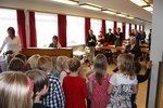Nemendur og kennarar taka lagið á sal.