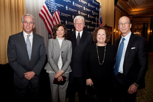 Forsetahjón ásamt forsvarsmönnum Chicago Council on Global Affairs.