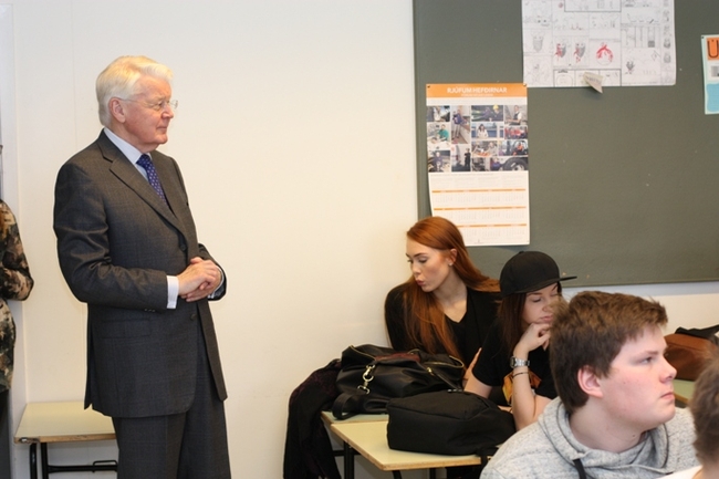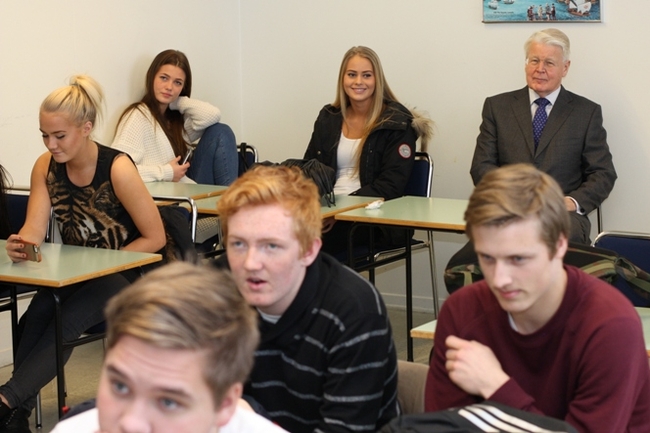 Forseti ræðir við nemendur í tíma um forvarnarmál.