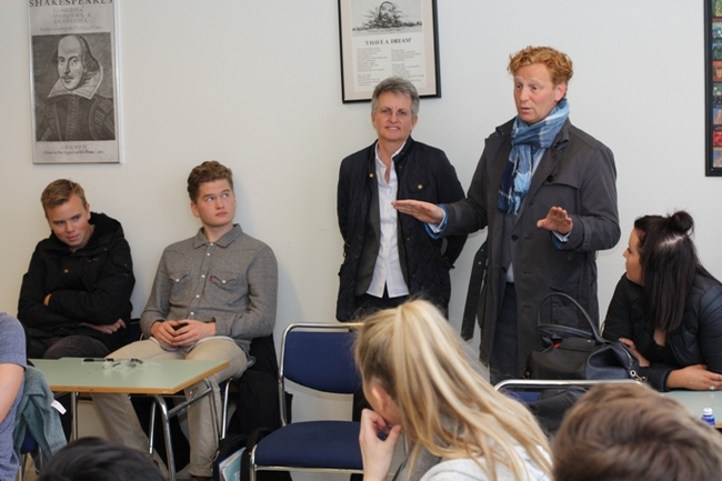 Bragi Björnsson skátahöfðingi ræðir við nemendur MS.