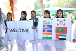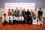 Forseti og fulltrúar Zayed orkuverðlaunanna með kennurum og nemendum Sheikh Khalifa Banglesi Islamia skólans í Abu Dhabi.