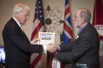 Forseti tekur við viðurkenningu Cornell háskóla.