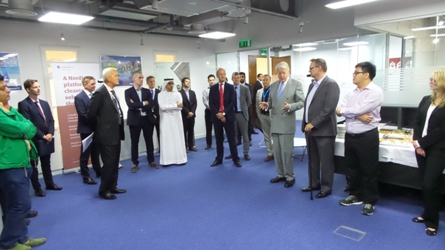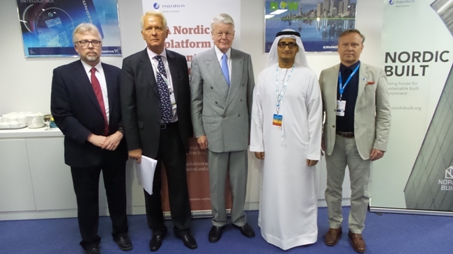 Forseti ásamt sendiherrum Danmerkur og Noregs og Benedikt Höskuldssyni frá utanríkisþjónustunni auk fulltrúa Masdar.
