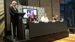 Forseti flytur ávarp við upphaf íslensks bókmenntaviðburðar í Barcelona.
