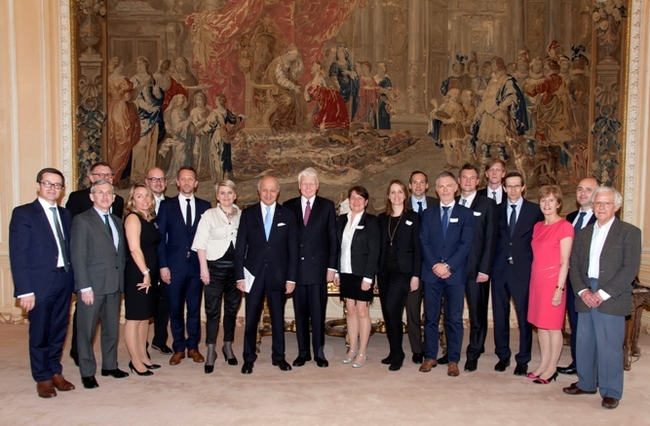 Stjórn fransk-íslenska viðskiptaráðsins ásamt forseta, iðnaðarráðherra og franska utanríkisráðherranum auk sendiherra landanna.