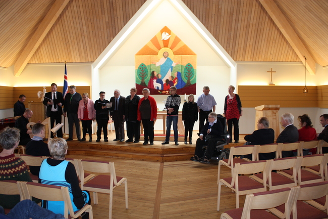 Forseti ávarpar íbúa á kveðjustund í Sólheimakirkju