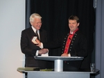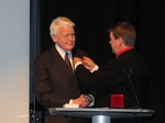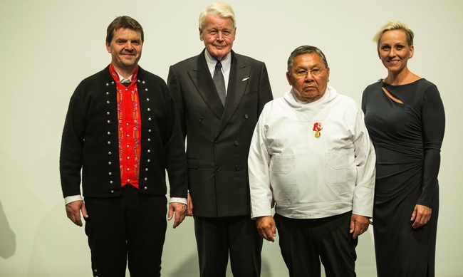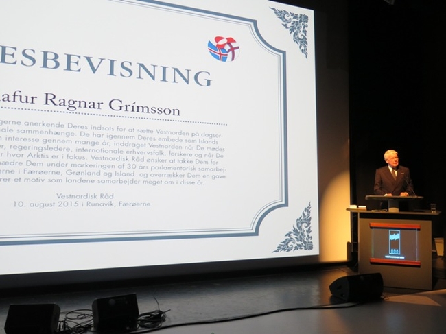 Forseti tekur við heiðursverðlaunum úr hendi Bill Justinussen formanns Vestnorræna ráðsins. (Ljósmynd RACLIP)