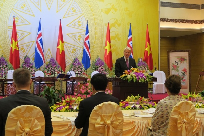 Forseti flytur borðræðu í hátíðarkvöldverði sem forseti Víetnams bauð til í Hanoi.