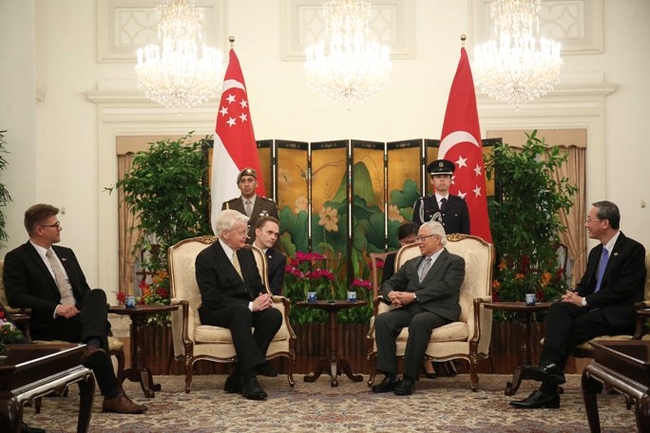Viðræður forseta Íslands og forseta Singapúrs í forsetahöllinni í Singapúr.
