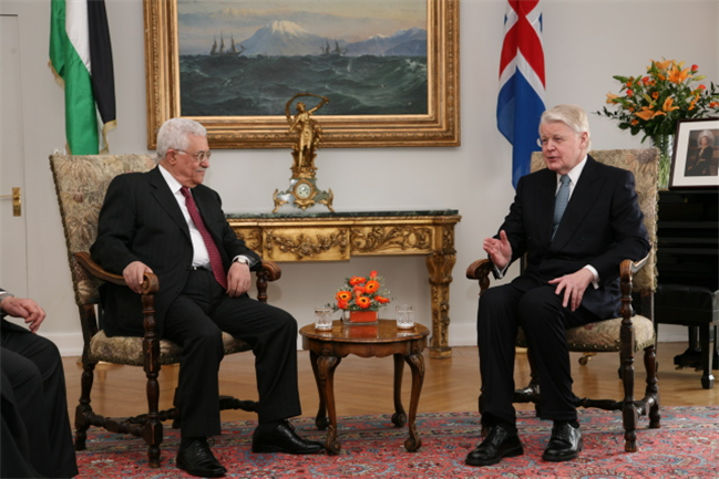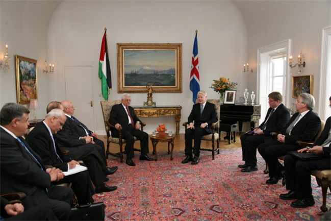 Forseti tekur á móti Mahmoud Abbas forseta palestínsku þjóðstjórnarinnar á Bessastöðum