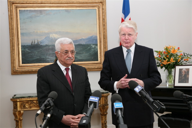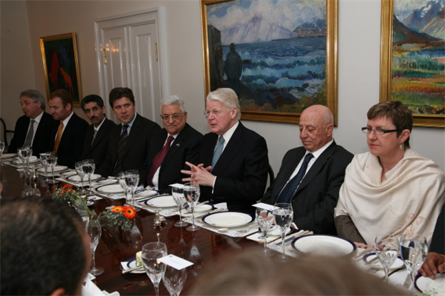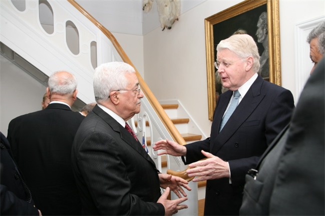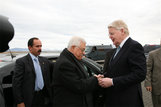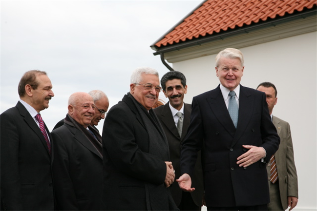 Bjarni Benediktsson formaður utanríkismálanefndar Alþingis heilsar Abbas forseta