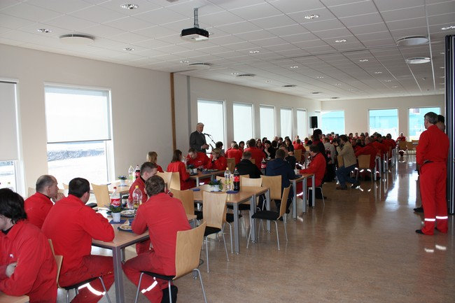 Rætt við starfsmenn í matsal Norðuráls.