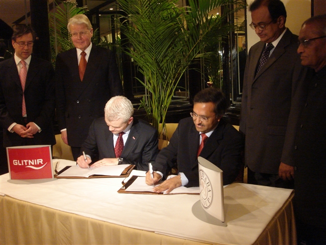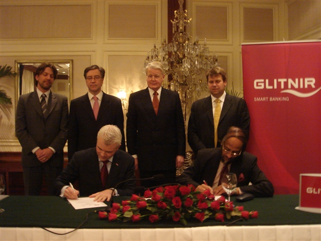 Frá undirritun samnings milli Glitnis og LNJ Bhilwala í Nýju Delí.
