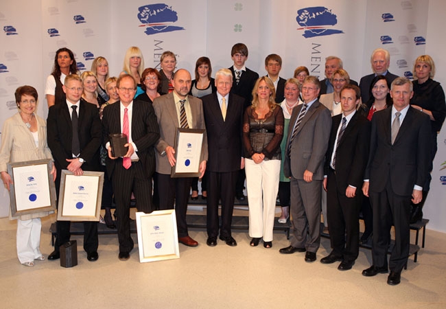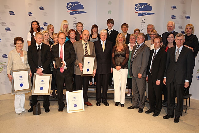 Verðlaunahafar Íslensku menntaverðlaunanna 2008 ásamt forseta Íslands, menntamálaráðherra og fulltrúum sparisjóðanna.
