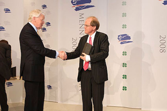 Höfundur námsefnis, Pétur Hafþór Jónsson, tekur við Íslensku menntaverðlaununum 2008.