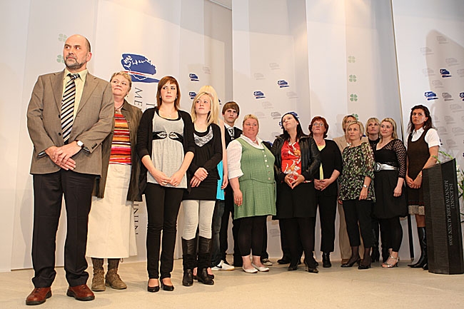 Fulltrúar Hvolsskóla taka við Íslensku menntaverðlaununum 2008.