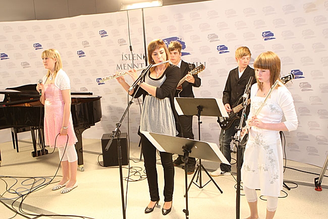 Fjölbreyttir hattar: tónlistaratriði flutt af nemendum Austurbæjarskóla.