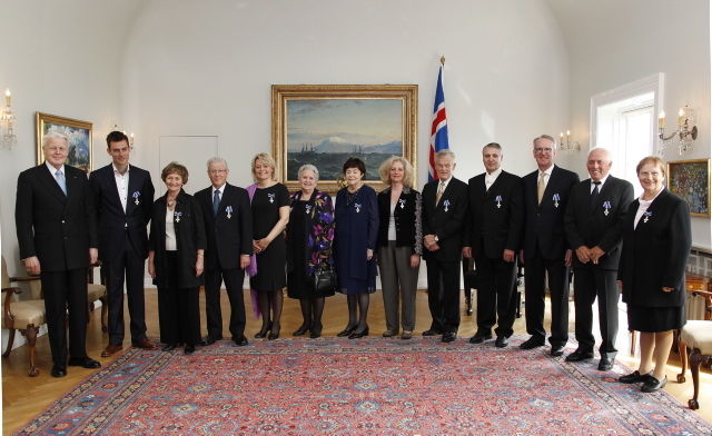 Frá vinstri: Forseti, Gísli Örn Garðarsson, Helena Eyjólfsdóttir, Reynir Vilhjálmsson, Guðrún Nordal, Guðrún Guðmundsdóttir, Magðalena Sigríður Hallsdóttir, Edda Erlendsdóttir, Jónas Þórir Þórisson, Hjalti Pálsson, Jón Ásbergsson, Kristbjörn Þór Árnason og Marga Ingeborg Thome.