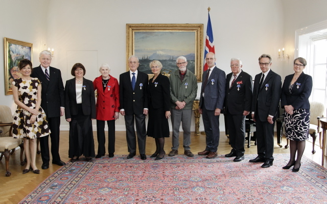 Dorrit Moussaieff forsetafrú, forseti Íslands, Lilja Árnadóttir, Sigrún Guðjónsdóttir, Dagfinnur Stefánsson, Guðný Sverrisdóttir, Helgi Hallgrímsson, Hjörleifur Stefánsson, Friðjón Björn Friðjónsson, Tómas R. Einarsson og Hallfríður Ólafsdóttir